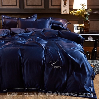 刺繡絲滑緞面床包被套3件組冷調混搭風好眠寢具細柔舒適透氣極簡素色床組夏季冰絲裸睡床包天絲床包床包三件组